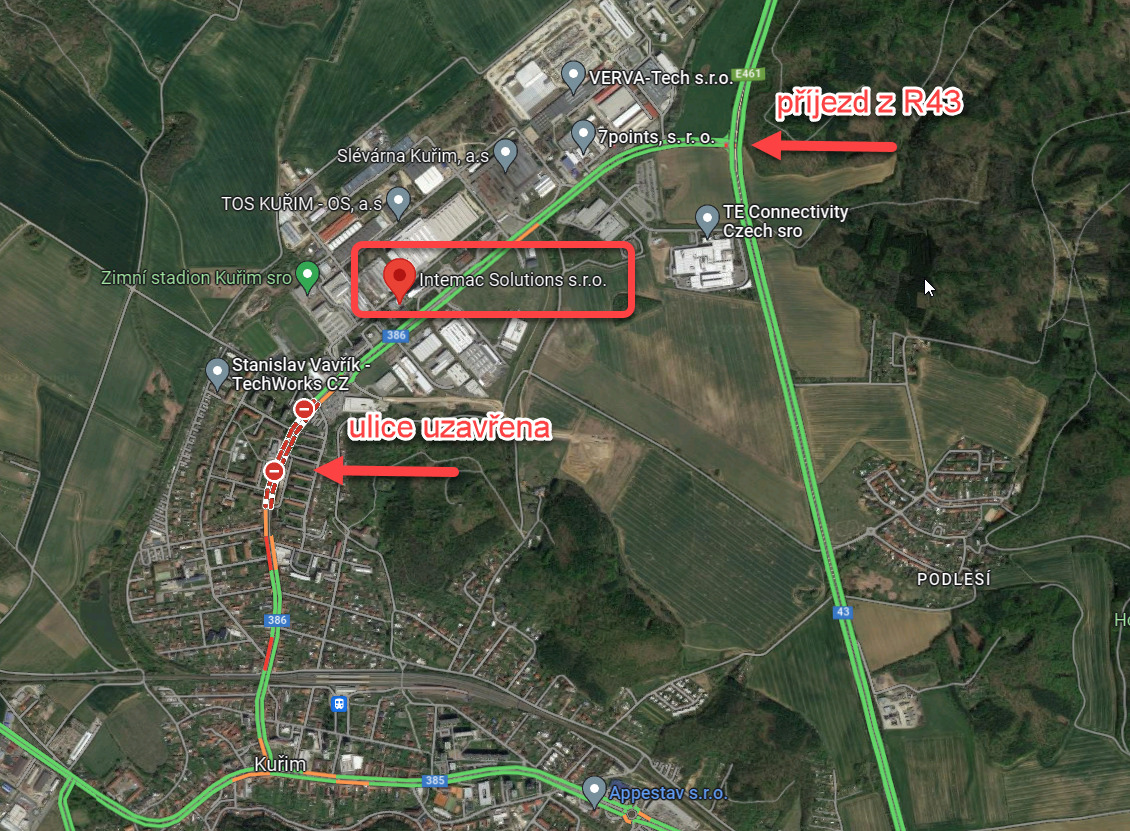 Silnice číslo 386 je neprůjezdná. Využijte tedy sjezdu ze silnice R43. Zaparkovat můžete na veřejném parkovišti u místního wellness.