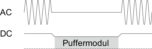 Po výpadku síťového napětí nebo po vypínacím procesu dodává vyrovnávací modul po definovanou dobu zátěžový proud a hlásí přes signální svorky výpadek sítě. Před vypnutím stejnosměrného napětí lze procesní data uložit a ukončit procesy. Následně jsou možné kontrolované opětovné rozběhy.