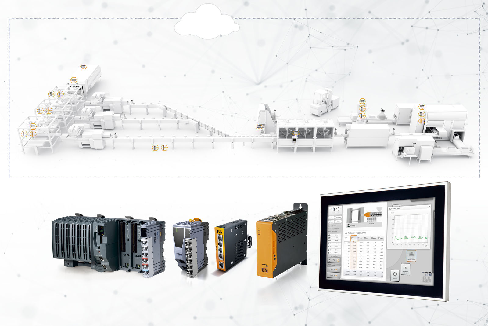 Baseret på et fysisk Gigabit Ethernet lag vil OPC UA over TSN produkter tilbyde betydeligt højere båndbredde. Live driftsdata kan indsamles og deles med systemer på højere niveauer. "Det er et perfekt link fra feltniveau til skyen," siger Klein. Avancerede IIoT-løsninger som tilstandsovervågning og forudsigelig vedligehold kan udnytte live feedback for at forlænge komponentens levetid og øge systemtilgængeligheden.