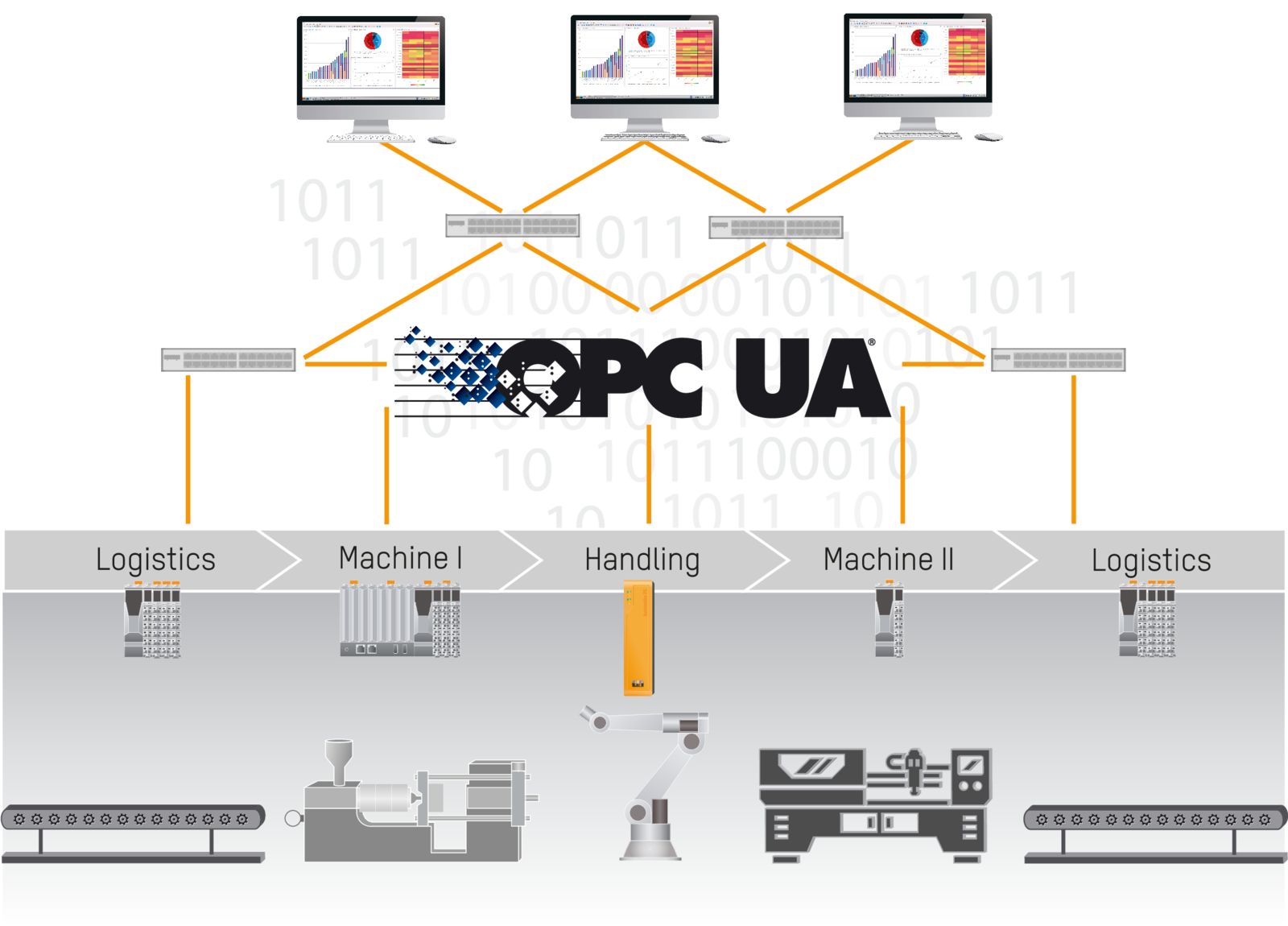 Selv inden for disse modulære produktionsenheder, kræver de mere og mere komplekse opgaver, der udføres, et større antal og udvalg af højteknologiske komponenter. På trods af, at de er fremstillet af flere forskellige producenter, skal disse komponenter tale med hinanden for at få de data, de har brug for.