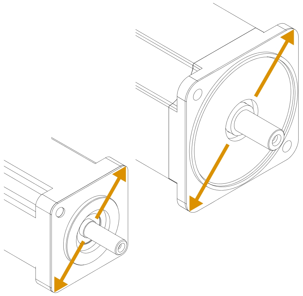 ![]() | Kühlart 8JSA ist selbstgekühlt und hat eine schlanke, längliche Bauform. Diese Motoren müssen mit dem Anbauflansch, der gleichzeitig auch als Kühlfläche dient, an die Maschine angebaut werden. |