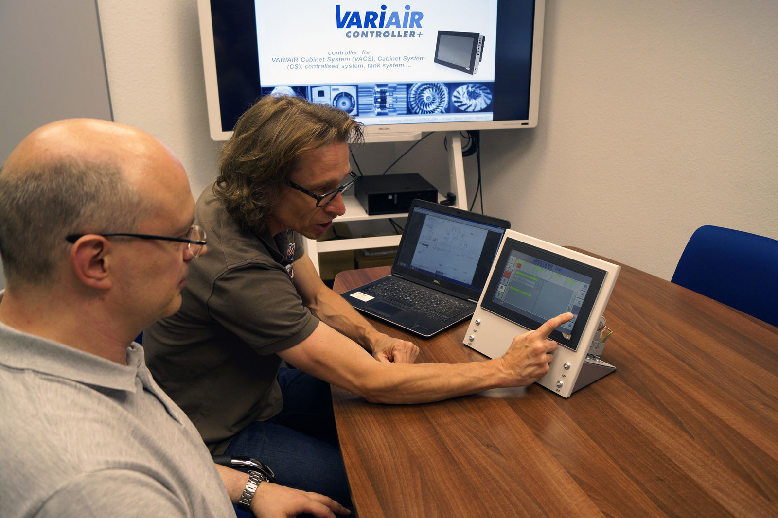 Ein Tastendruck genügt und die im Kundengespräch ermittelte Anlagenkonfiguration wird in der B&R-Steuerung komplett in einer Textdatei gespeichert. Diese Systemkonfiguration wird genau wie die Basissoftware auf einem zentralen und weltweit verfügbaren Server hinterlegt. Von diesem werden die Systemdaten im Produktionsprozess direkt und ohne weiteres Engineering gemeinsam mit der Basissoftware in den zu liefernden VARIAIR Controller+ geladen. Sollten später an der Anlage noch weitere Anpassungen erforderlich sein, können dies Techniker vor Ort autark erledigen, dokumentieren und wieder über diesen Server zur Verfügung zu stellen.