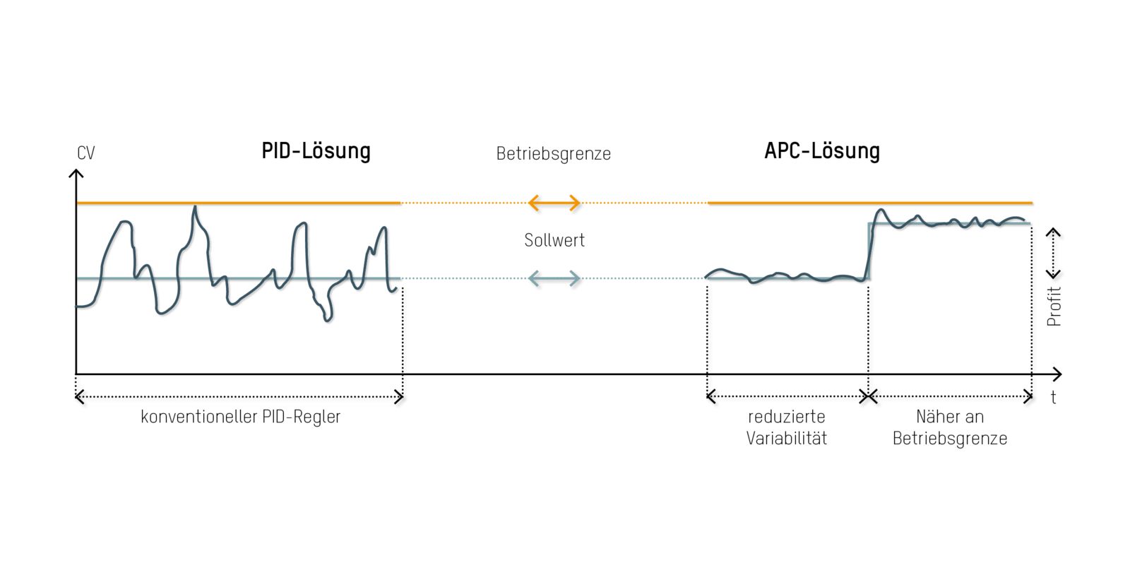 Mit Advanced Process Control können Regelgrößen näher an die Betriebsgrenzen gefahren werden.