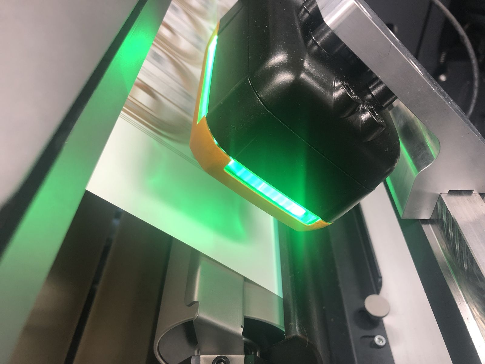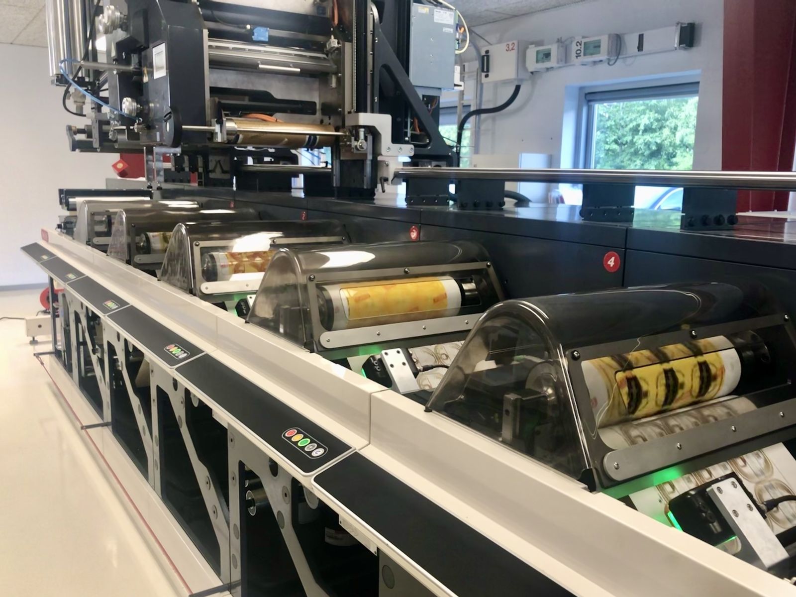 - Die Druckmaschine kann sich selbst kalibrieren, ohne den Druckprozess zu unterbrechen.