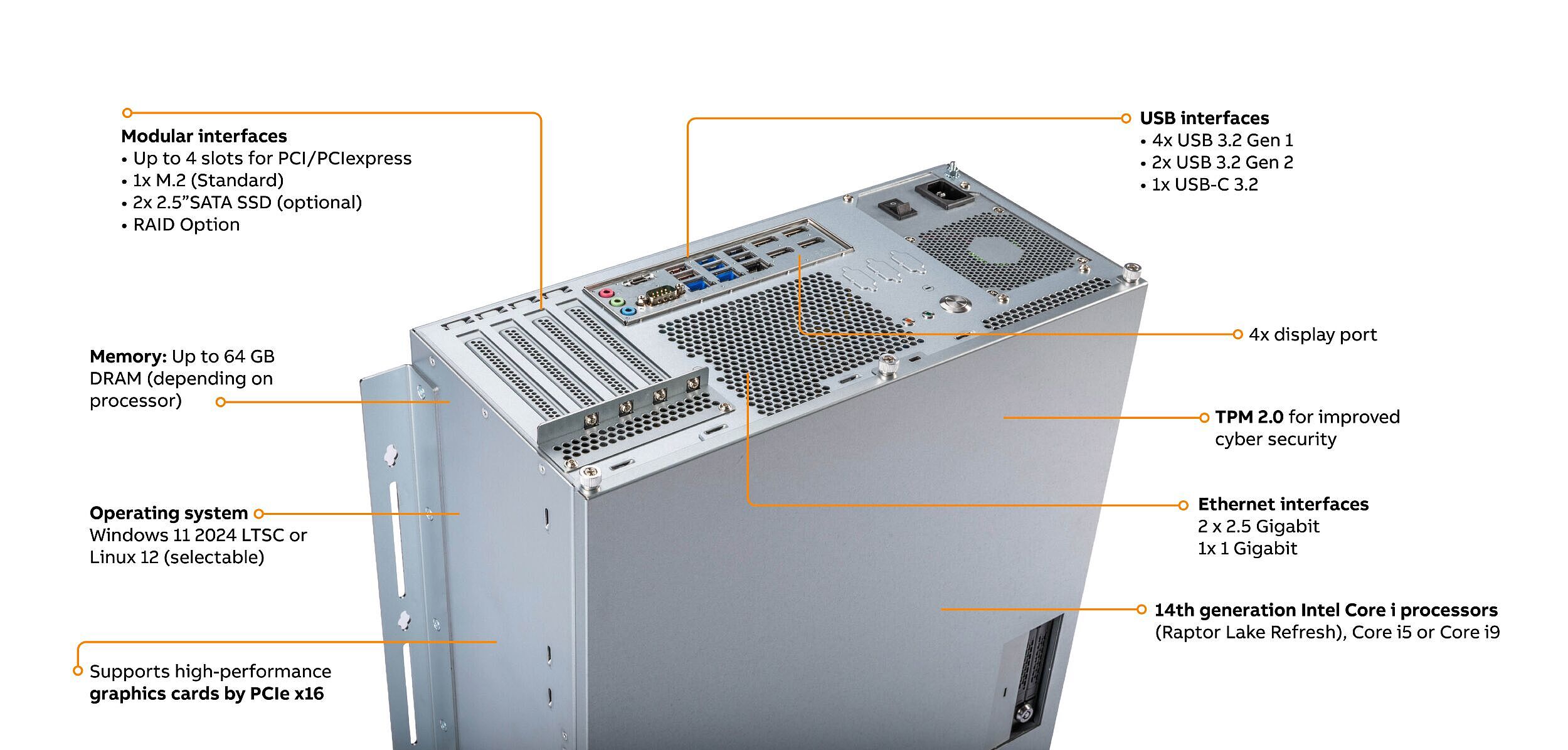 Der Automation PC 50A ist ein äußerst kosteneffizientes Produkt und damit ein überzeugendes Angebot im Segment der Ultra-Hochleistungsgeräte. Angetrieben von der 14. Generation der Intel Core i Plattform bringt er modernste KI-Funktionen direkt in die Fertigung. Er unterstützt Ultra-High-End-CPUs und anspruchsvolle Hardware von Drittanbietern wie Grafikkarten und KI-/Deep-Learning-Hardware.