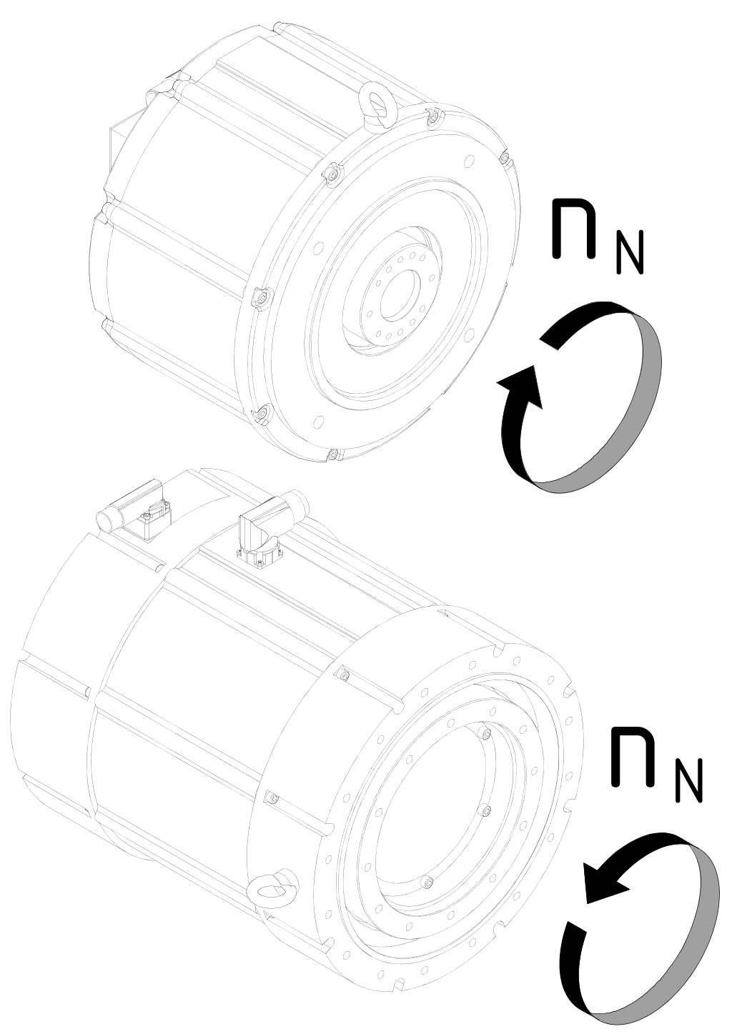 Hohlwellenmotoren (8LTB / 8LTK) weichen von der üblichen Drehrichtung (rechts) ab und werden linksdrehend ausgeliefert. Eine softwareseitige Anpassung auf rechtsdrehend ist durch den Anwender möglich.