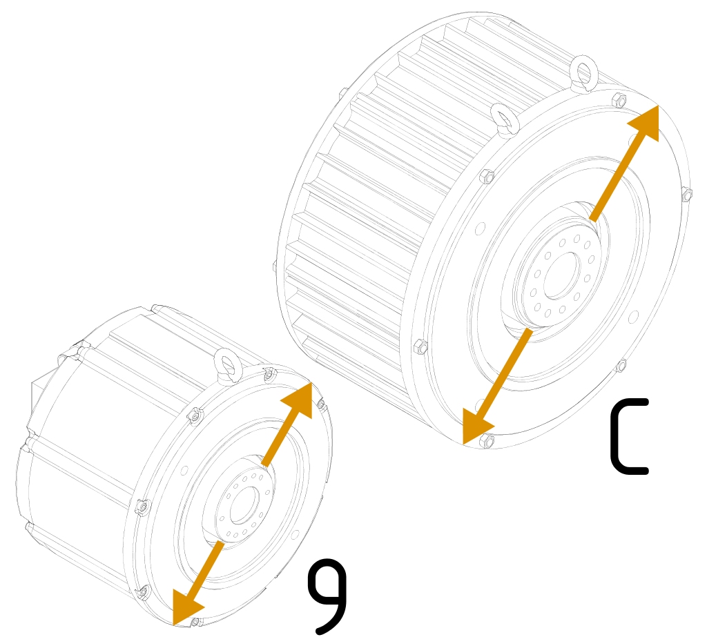 ![]() | Torquemotoren 8LT sind in verschiedenen Baugrößen (9 und C) erhältlich. Diese unterscheiden sich in den Abmessungen (insbesondere den Flanschabmessungen) und in den Leistungsdaten. Die Baugrößen werden durch ein Zeichen (c) in der Bestellbezeichnung unterschieden. Die Auflistung der Baugrößen ist aufsteigend. |