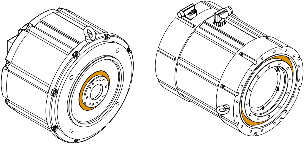 Torquemotoren 8LT sind mit 2 verschiedenen Anschlussoptionen verfügbar. Die Position der Anschlüsse wird von der Ausführung des Wellenendes bestimmt.