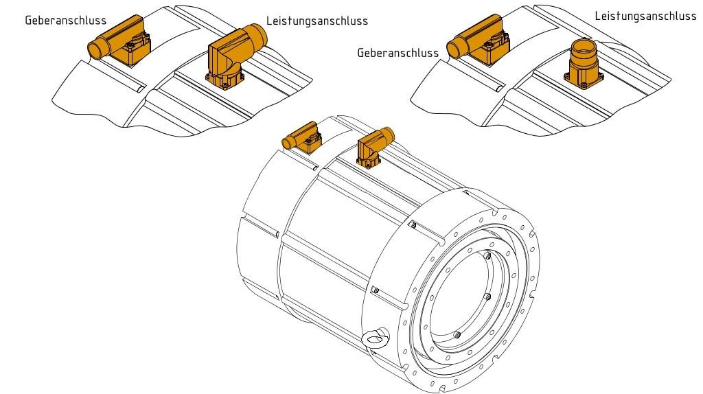 Leistungsanschluss: gewinkelt (drehbar) Geberanschluss: gewinkelt (drehbar) | Leistungsanschluss: gerade Geberanschluss: gewinkelt (drehbar) |