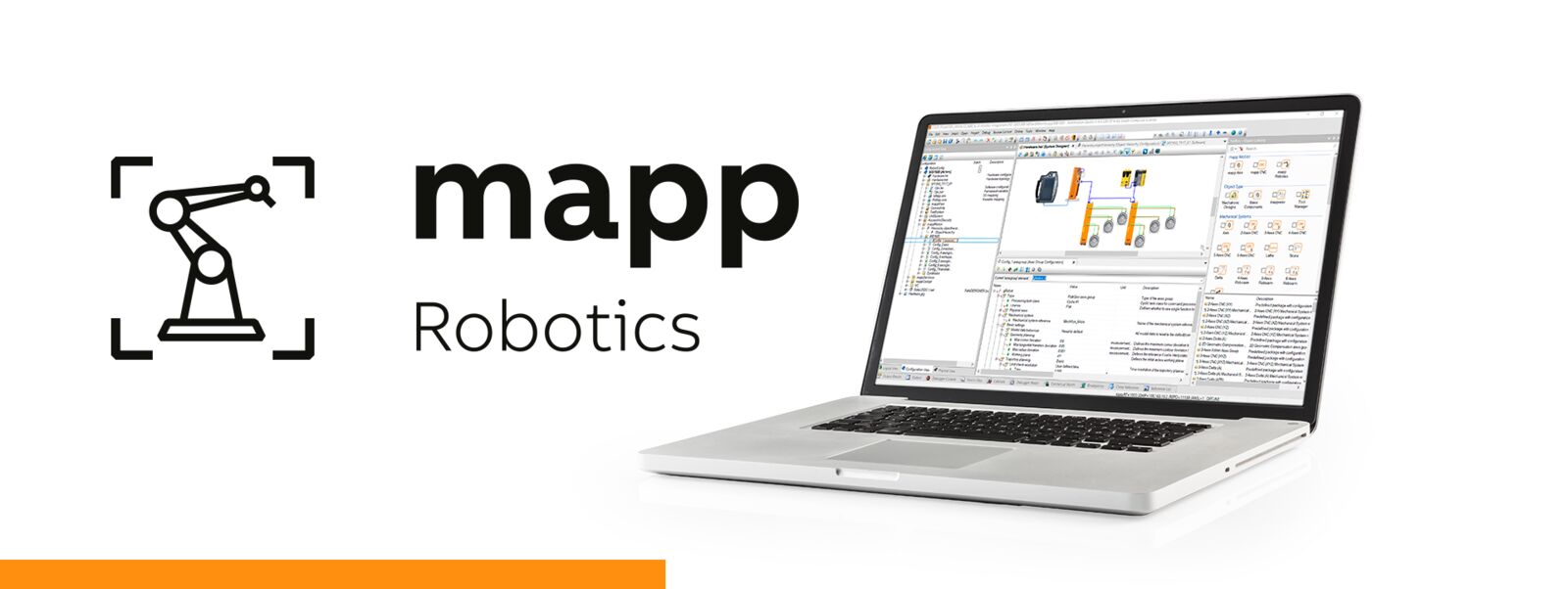 Die mapp-Robotics-Komponenten sind nahtlos mit den anderen mapp-Funktionen verknüpft, zum Beispiel mit der Nutzerverwaltung, dem Alarmsystem und der Web-Visualisierung mapp View. Dadurch wird die Entwicklungszeit deutlich verkürzt. Auch sichere Roboterapplikationen lassen sich einfach und unkompliziert umsetzen.