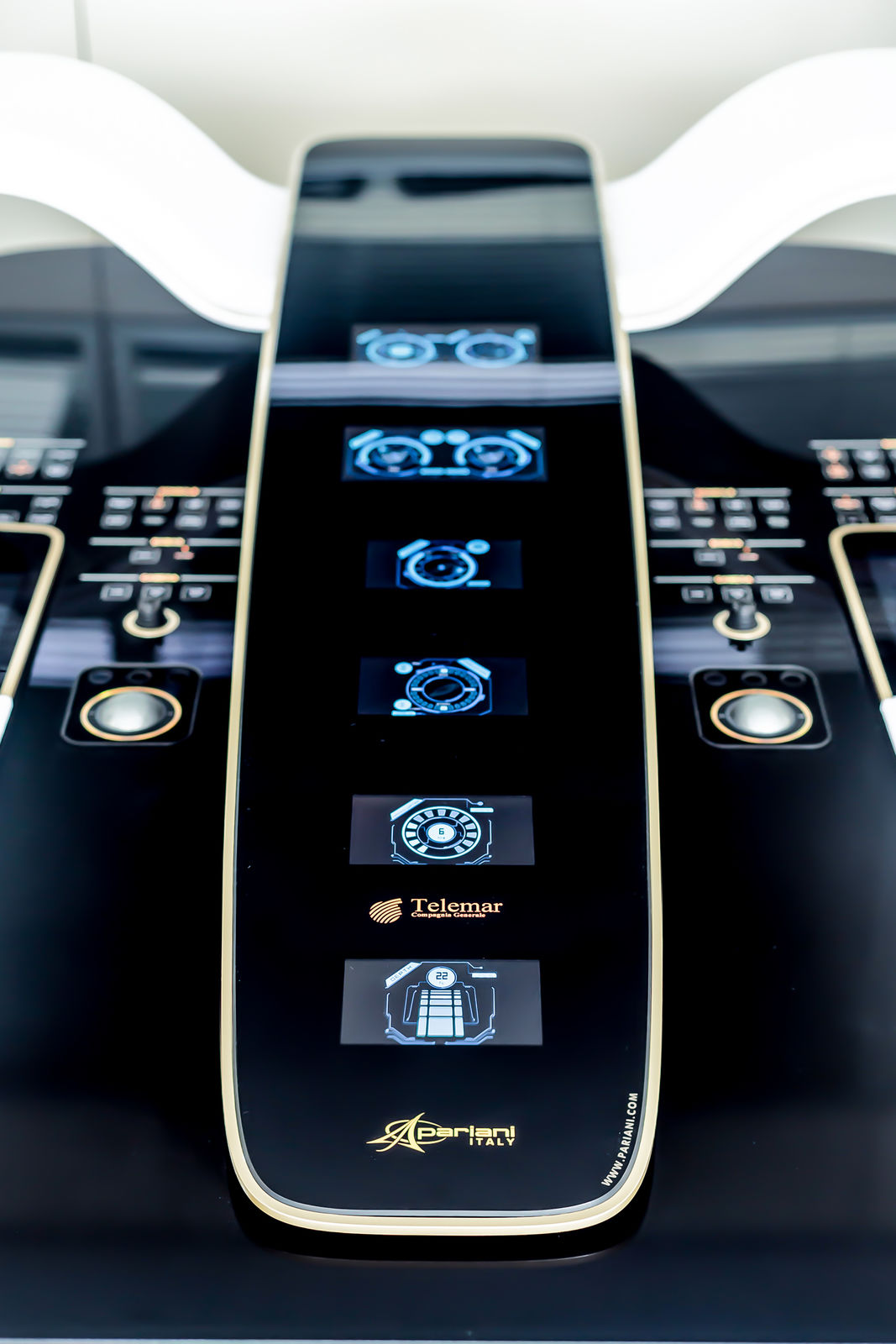 Ob während eines Manövers oder bei voller Fahrt voraus: Auf der Kommandobrücke muss alles funktionell sein. Auf einer Superyacht bleibt kein Detail dem Zufall überlassen. Deshalb hat Pariani, als höchsten Ausdruck von Technik und Ergonomie, die Konsole Glass Bridge konzipiert. Dabei werden Design und italienische Raffinesse mit Automatisierung sowie ausgeklügelten Kommunikationstechnologien kombiniert, um ein unvergleichlich emotionales und taktiles Steuerungserlebnis zu bieten.