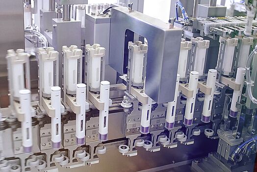 - Verschiedene Produktvarianten wie unterschiedliche Stiftfarben oder Nadellängen können auf einer einzigen Multiformat-Linie gefertigt werden. Das ermöglicht schnelle Umrüstungen bei minimalen Stillstandszeiten.