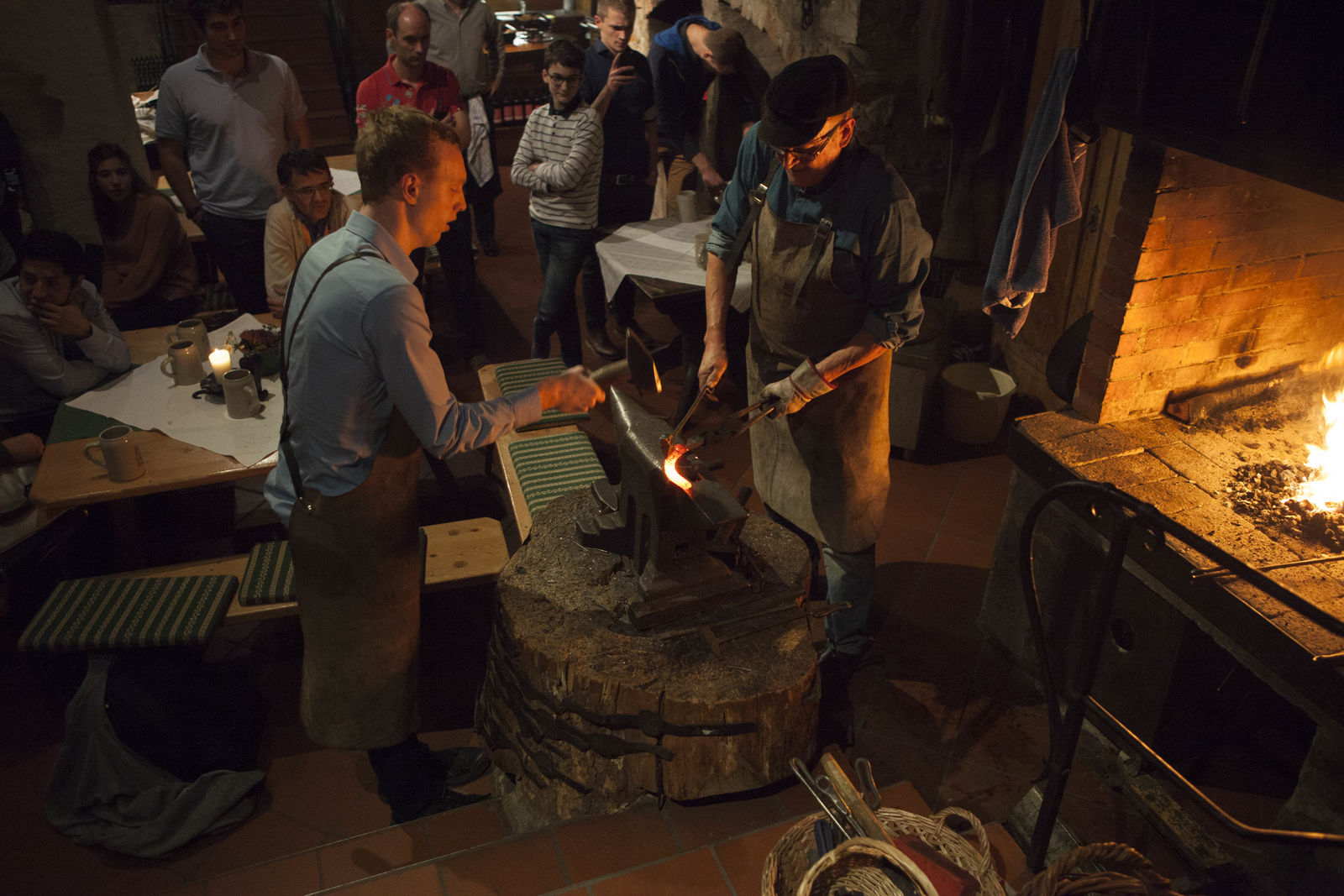 The group was captivated by a live horseshoe-making demonstration.
