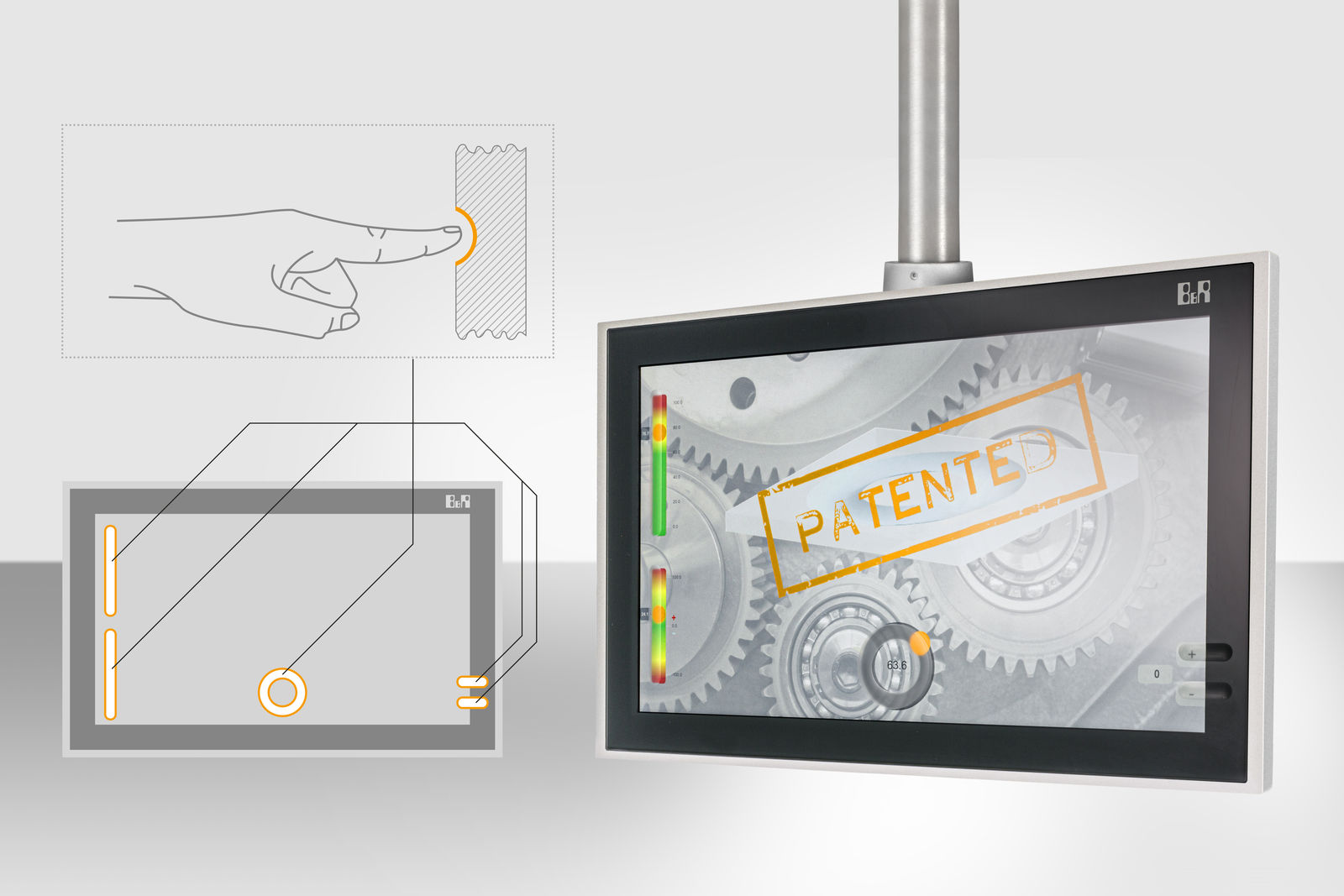 Upon customer request, B&R offers all HMI variants with a projected capacitive touch screen with corresponding finger guides. The guides can be any shape and size, enabling optimal integration of all types of sliders and dials in the HMI application. This opens up the entire screen surface for displaying content. B&R's patented tactile finger guides allow eyes-off operation. Operators can adjust settings without ever taking their attention off the machine.