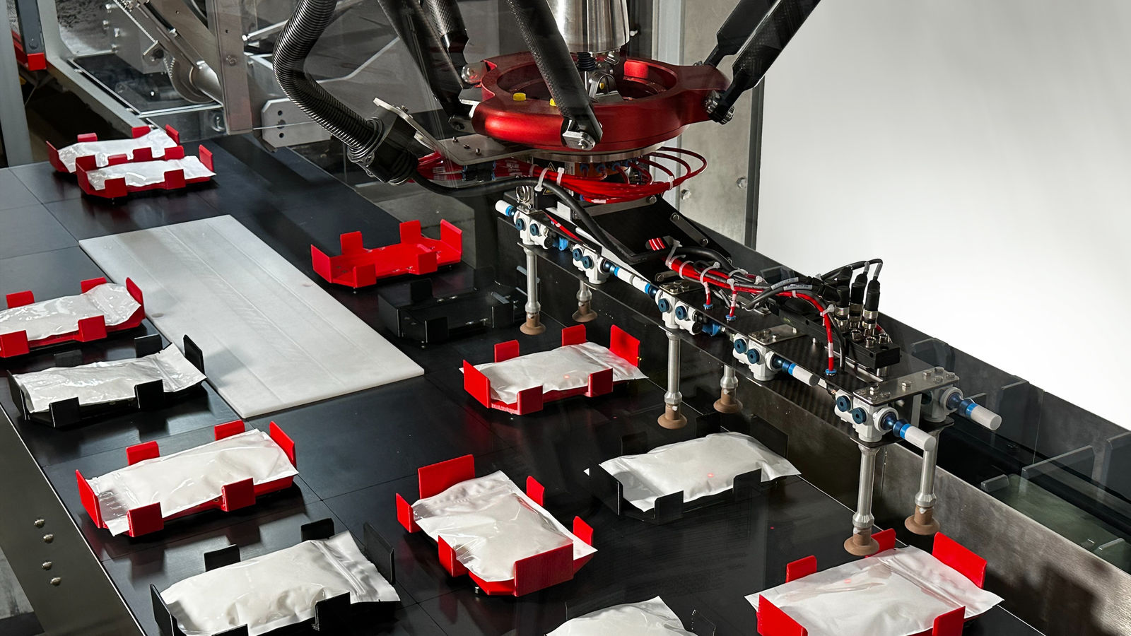 Let's put the shuttles to work – and then let them play. See how ACOPOS 6D's independent floating shuttles handle packaging processes like filling, capping and labeling. Then watch them dance in formation, pose for the camera, and even get a spa treatment in the washdown area.