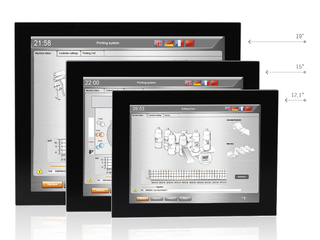 These systems not only feature brilliant graphics, but also an extremely slim design; the 12.1" variant can even be used as a replacement for the 10.4" panel if a higher resolution is desired. To top it off, the LED backlight features a wide adjustment range that allows the displays to be dimmed for user comfort in environments with lower light levels.