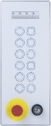 The keyboard expansion is equipped with 4 function keys and 12 illuminated ring keys, 1 E-stop and 1 key switch and can be mounted on the right side of the Automation Panel 800.
