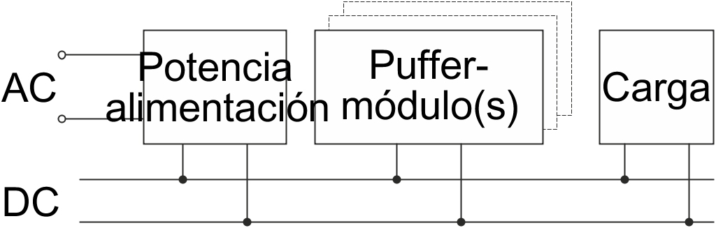 El módulo de respaldo no requiere líneas de control. Se puede conectar en paralelo en cualquier punto del circuito de corriente de carga. Además para la redundancia o para prolongar el tiempo de respaldo, es posible conectar hasta cinco módulos en paralelo. Los terminales dobles permiten un cableado fácil.