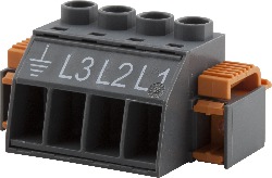 Accessory terminal block, 4-pin, screw clamp terminal block 6 mm², Labeled L1 L2 L3 PE