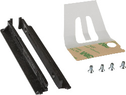 The slide-in compact kit can be used as a replacement part for the slide-in compact drives (HDD/SSD). It consists of a removal strip, plastic guide rails and the necessary screws.