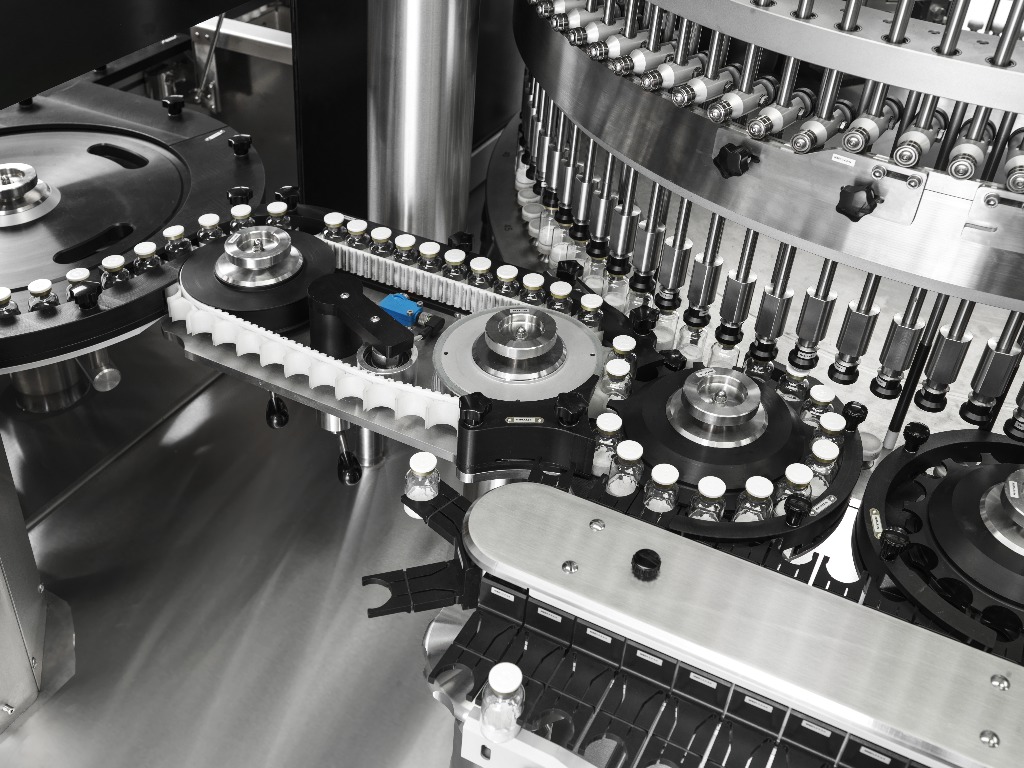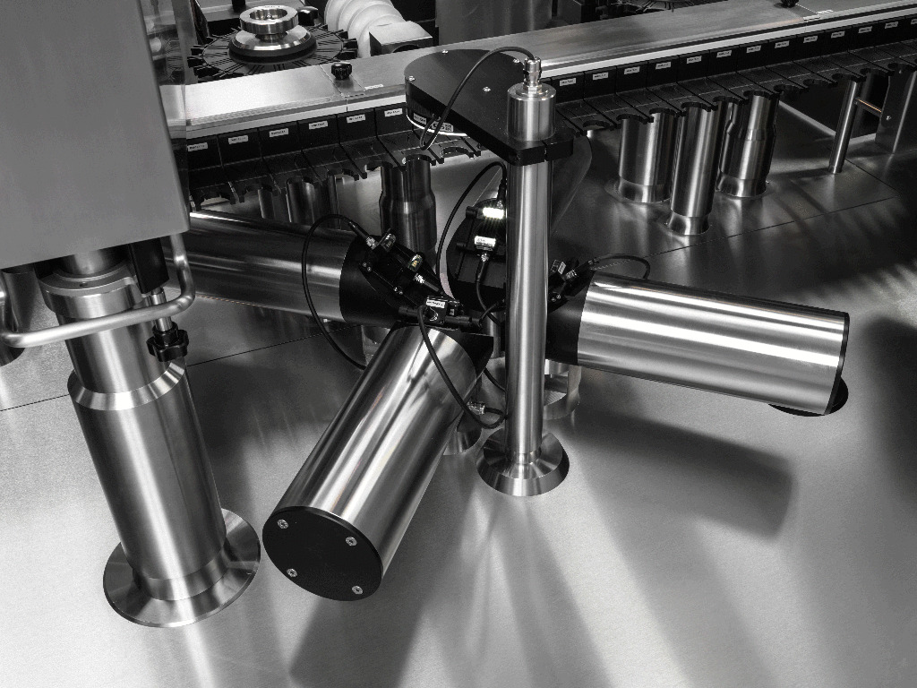 Una máquina de inspección tiene una multitud de piezas móviles y giratorias, que deben estar muy estrechamente sincronizadas para proporcionar las velocidades alucinantes a las que se inspeccionan las ampollas y los frascos. El control del movimiento es, por lo tanto, un elemento crucial del sistema de control. Los servoaccionamientos ofrecen la precisión necesaria y la capacidad de cambiar rápida y fácilmente entre lotes.