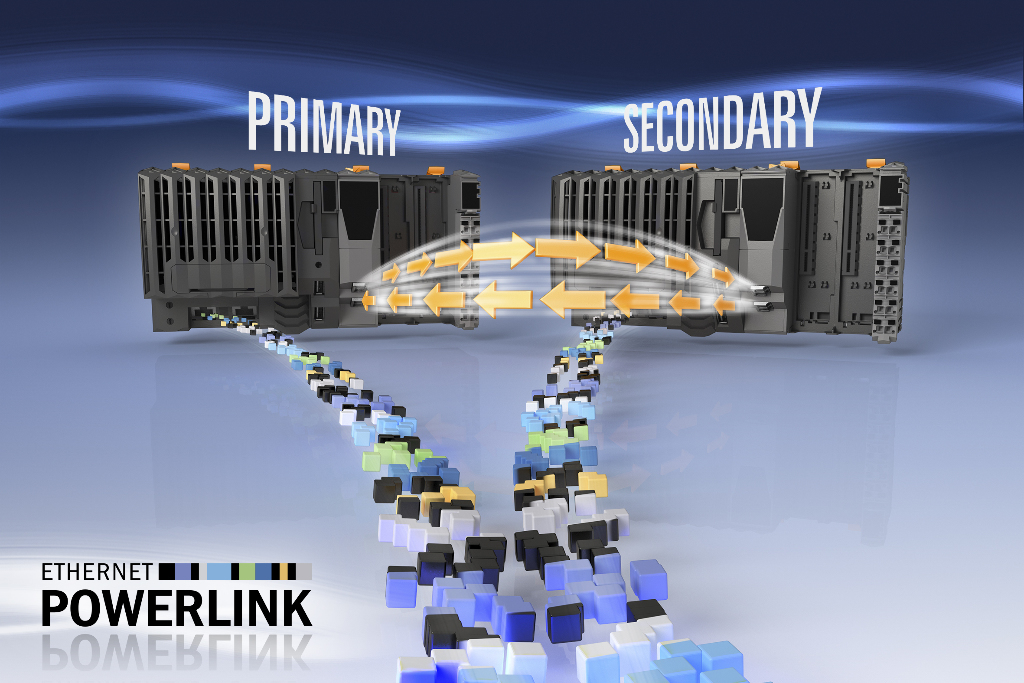 Esta solución de redundancia utiliza el protocolo de comunicación de alto rendimiento en tiempo real Ethernet POWERLINK. Un enlace redundante independiente de fibra óptica de alta velocidad se utiliza para sincronizar de forma continua todos los datos importantes (como por ejemplo, la imagen de E/S) entre los autómatas activos e inactivos.