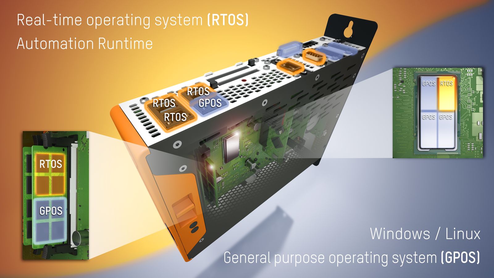 B&R Hypervisor posibilita el uso simultáneo de un PC industrial como control de máquina y como SiteManager integrado. No se requiere ningún software adicional.