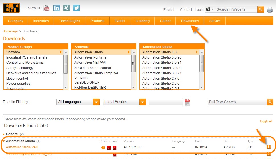 - In the download area, navigate to the Software / Automation Studio / Automation Studio V4.12 section.