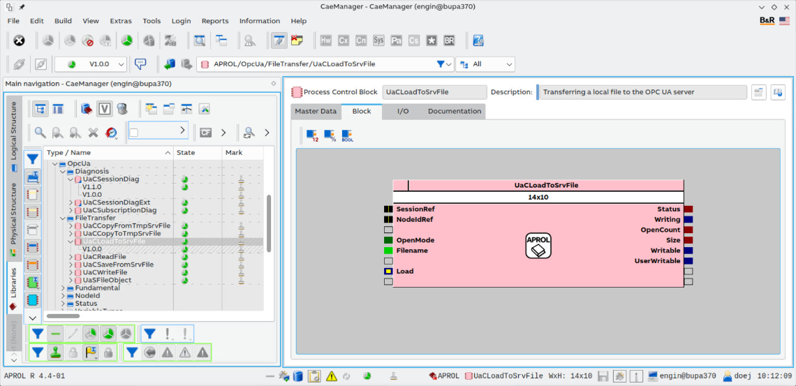 APROL provides extensive function blocks for OPC UA that can be used directly in control modules. Existing libraries can thus be easily extended with OPC UA functionality.