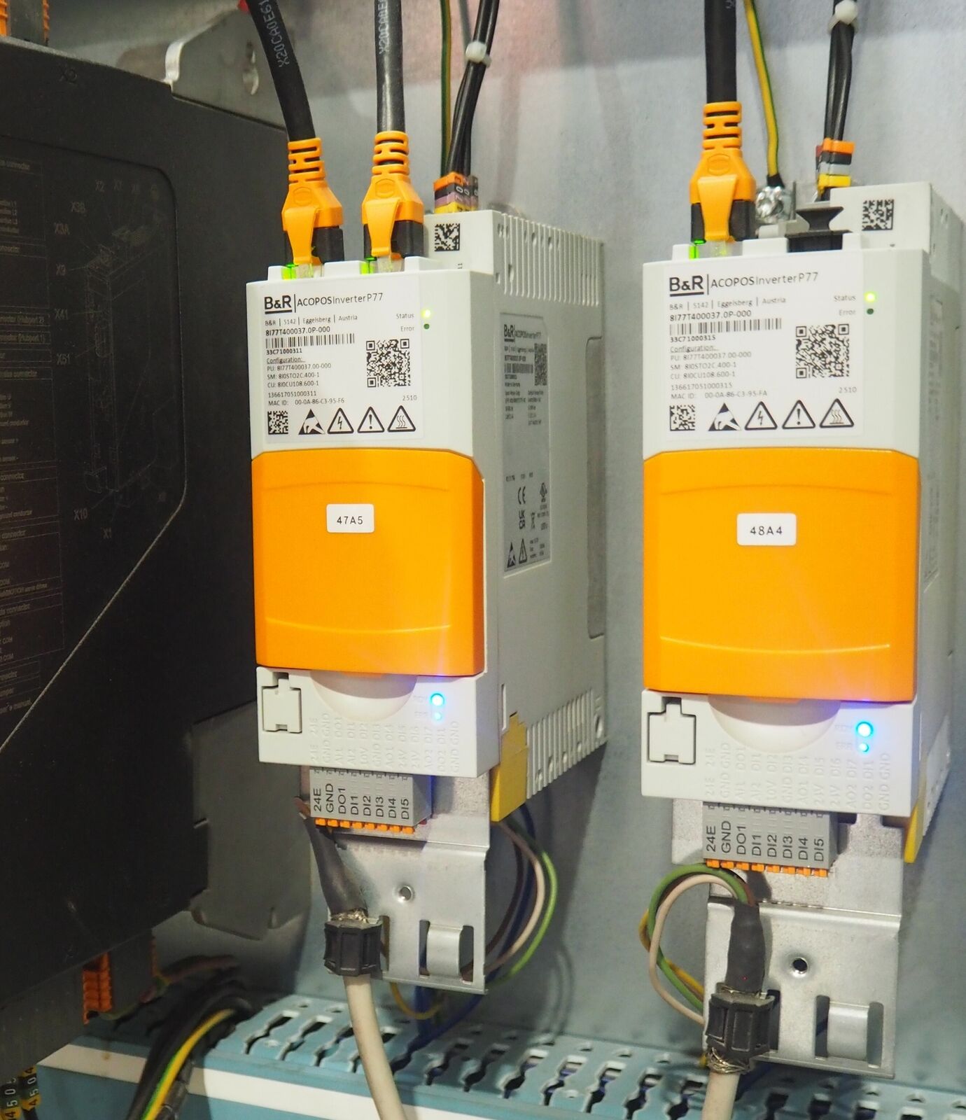 L’intégration de deux ACOPOS Inverter P77 constitue une avancée notable dans l’architecture d’automatisme de cette machine, et une première pour un client français. Leur adoption n’est pas seulement liée à leur conception matérielle, mais surtout à la valeur ajoutée qu’ils apportent en matière de pilotage du mouvement et d’homogénéité de l'écosystème B&R. Totalement intégrés à Automation Studio et à la suite logicielle mapp Motion, les P77 permettent une configuration rapide, un diagnostic simplifié et une communication temps réel parfaitement synchronisée avec l’automate, assurant ainsi une maîtrise optimale des séquences de rotation du tonneau - un mouvement simple en apparence, mais central pour garantir la qualité du contrôle.