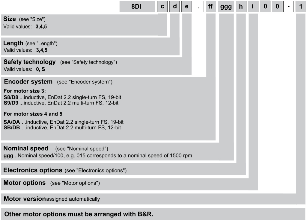 La combinaison des différentes options moteur est indiquée dans la référence produit sous la forme d'un code à un chiffre (i).