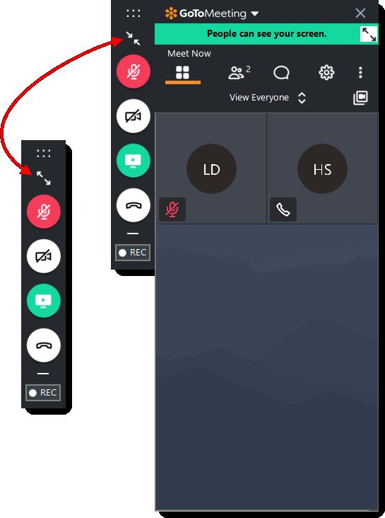 - Les éléments de commande de GoToMeeting s'affichent dès que la réunion démarre