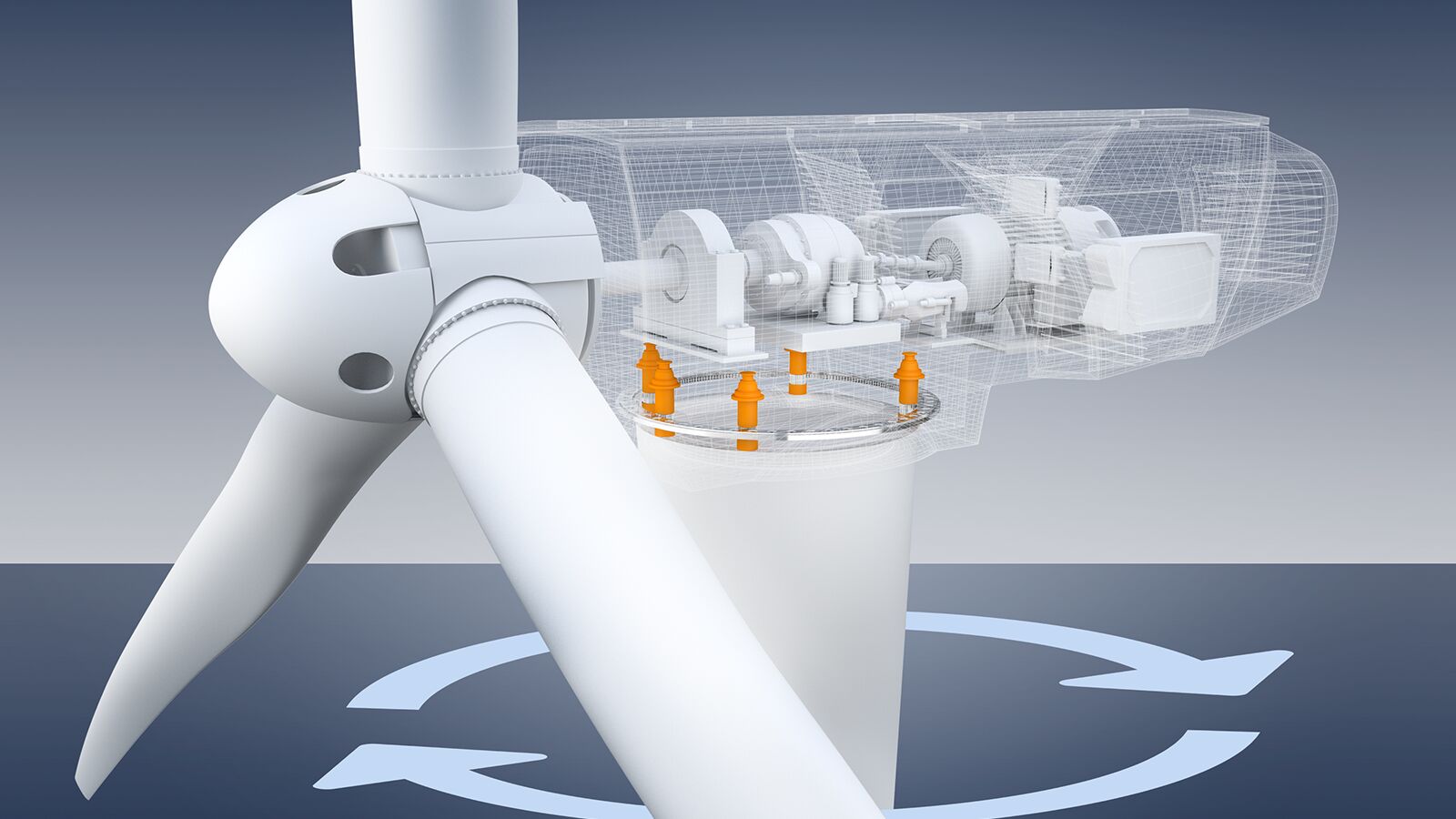 Conventional concepts with motors operated directly from the grid have disadvantages related to the technology used. Unwanted loads caused by jerky start-up processes lead to increased mechanical wear. Especially in the offshore sector with tower head masses of up to 500 tons, high mechanical wear leads to failures and the need to service the turbines. In addition, the mechanical load is increased because the nacelle is held in place by a hydraulic brake. These challenges can be overcome using active or passive approaches. Passive systems – such as wind vanes – have been used in the past for smaller installations.