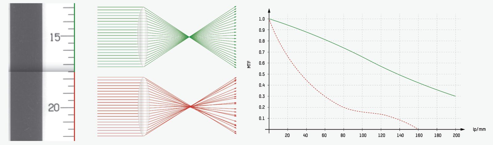 Les objectifs présentent une distorsion particulièrement faible ainsi qu'un contraste de détail élevé (fonction de transfert de modulation - MTF). Ils permettent ainsi d'atteindre une haute résolution jusqu'aux bords de l'image. Pour les objectifs à monture C, un couvercle spécial est fourni pour conserver la protection IP. Les objectifs intégrés disposent d'un réglage de focus électronique et présentent des longueurs de focale de 4,6 à 25 mm.