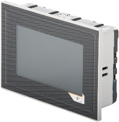 Power Panel C30, 4.3", landscape format, fieldbus interfaces: 2x CAN bus. CPU and memory: 1 GHz (ARM Cortex-A8), 256 MB DDRAM, 8 kB FRAM, 512 MB onboard flash drive. Display and touch screen: 4.3", 480 x 272 (WQVGA) resolution, analog resistive touch screen, landscape format, anthracite gray pinstripe. Interfaces: 1x Ethernet 10/100 Mbit/s, 2x USB 2.0, 2x CAN bus.