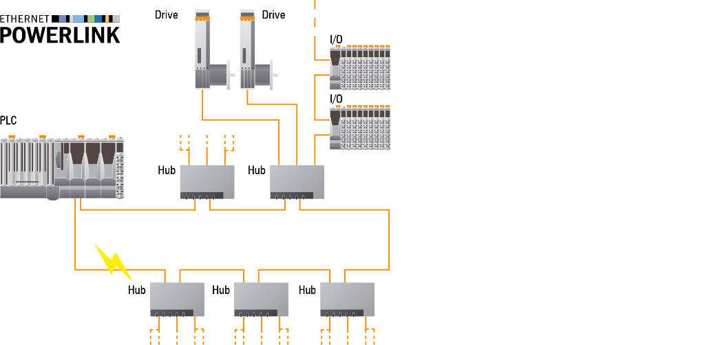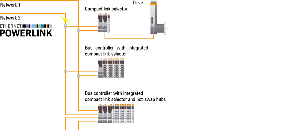 La redondance peut s'appliquer au contrôleur ou au réseau. Deux types de redondances réseau sont possibles avec POWERLINK : la redondance en anneau et la redondance de câble. Une combinaison de redondance de contrôleur et de redondance de réseau permet d’optimiser la protection contre les défaillances sur l’ensemble du système d’automatisation.