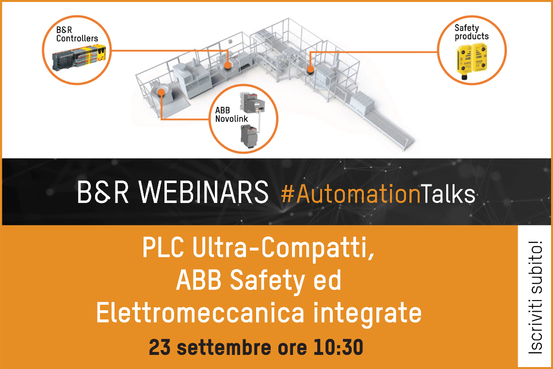 Si terrà il prossimo 23 settembre il primo webinar del nuovo ciclo degli Automation Talks di B&R dal titolo ‘PLC Ultra-Compatti, ABB Safety ed Elettromeccanica integrate'.