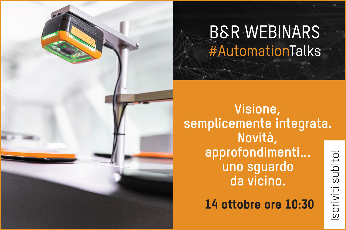 Ė in programma il prossimo 14 ottobre il nuovo webinar del ciclo Automation Talks di B&R dal titolo ‘Visione, semplicemente integrata - Novità, approfondimenti… uno sguardo da vicino'.