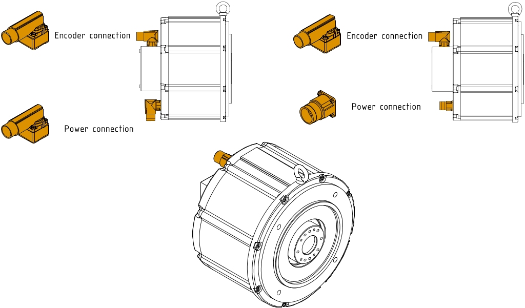 Power connection: Angled (swivel) Encoder connection: Angled (swivel) | Power connection: Straight Encoder connection: Angled (swivel) |