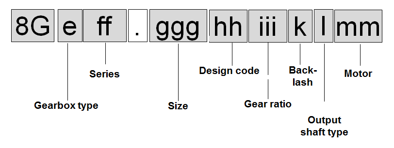 | 2) | Gear ratio 050 is exclusively available for the 8GP50-155! |