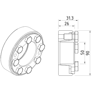 Shrink disc (1 piece), inner diameter 50 mm, 8 clamping screws