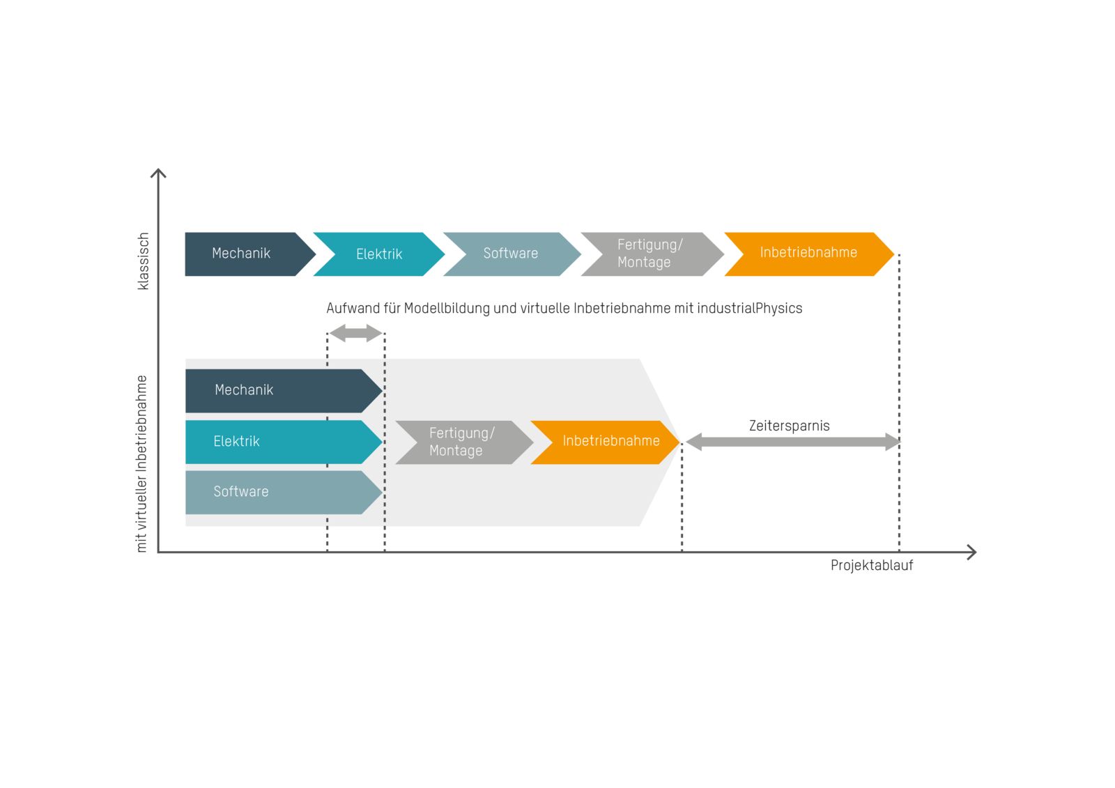 These are two criteria that industrialPhysics satisfies perfectly. With an integrated real-time physics engine, the software simulates dynamic machine behavior in 3D. All the dynamic forces that impact the flow of materials can be tested using the digital twin. The machine developer gets instant visual feedback about how behavior is affected by different combinations of machine components. Unnecessary downtime can also be quickly identified and eliminated.