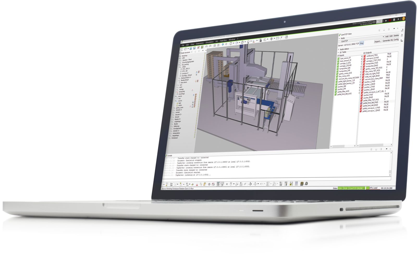 The 3D simulation software industrialPhysics uses CAD data to create a digital twin. The developer simply imports this data in STEP format, and can then quickly and easily create a digital twin.