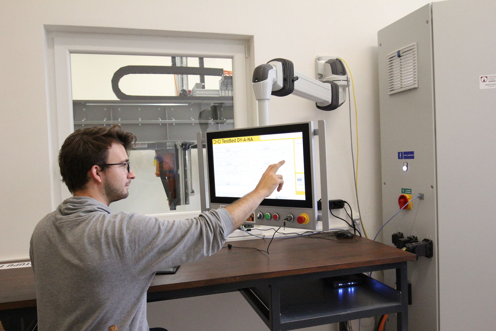 At the Klokner Institute testbed, the print head is controlled using a swing-arm-mounted HMI panel from B&R. The web-based HMI application can also be viewed on a PC, smartphone or tablet.
