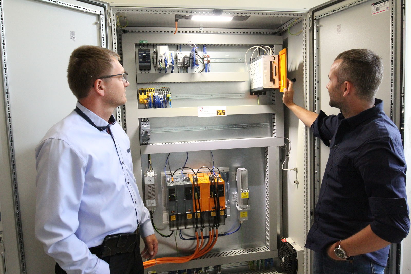 Leoš Beran (TUL) and Tomáš Kohout (B&R) view the powerful Automation PC that runs both the CNC-based control solution and the HMI application.