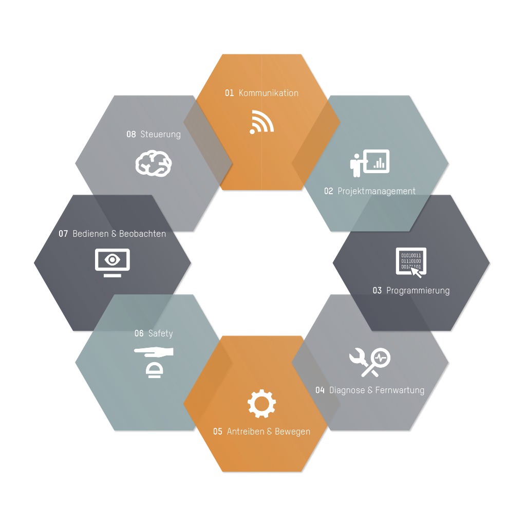 ハードウェア・コンフィギュレーションのシステム・サポートと完全なグラフィック化、すべてのレベルでのソフトウェアのモジュラー化によって、プリプログラム・テクノロジー・コンポーネントの特長を生かした機械・システムの開発はスムーズになります。