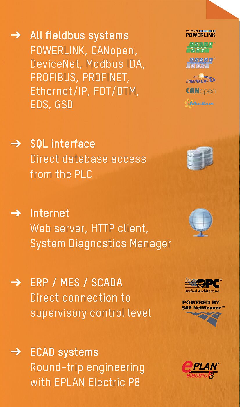 あらゆるフィールドバス・システムの直接的な統合向けのオプションがあるので、Automation Studio 4は利用可能なフィールド・デバイスの振る・スペクトラムを開き、サードパーティ・システム統合のために最適なサポートを提供します。 をベースにした統合型セーフティ・ソリューション – 同じくAutomation Studio 4でプログラム可能 – は、使用されているフィールドバス・システムから完全に独立しています。