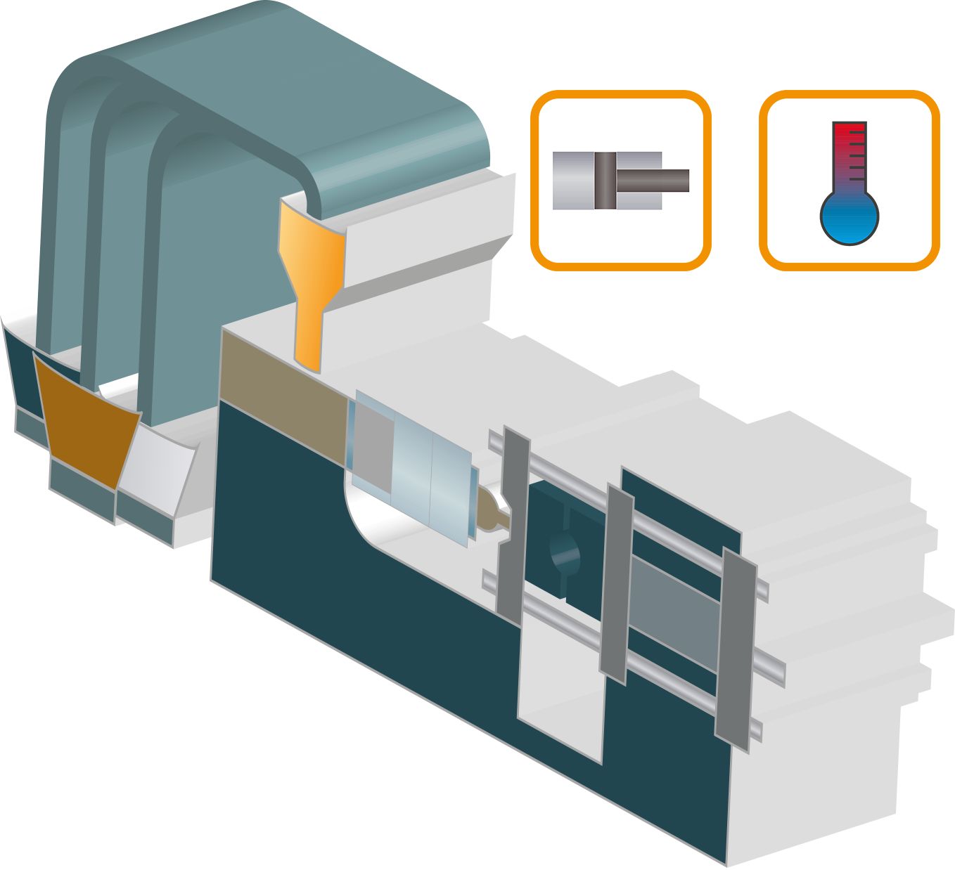 mapp Plastics provides technology functions for plastics processing. For example, there are easy-to-use components that generate target profiles for clamping units, injection pistons, ejectors and more. Additional special-purpose functions are also available, such as mold protection for the clamping unit, switching and dwell pressure during injection and a closed control loop for back pressure during plasticizing.