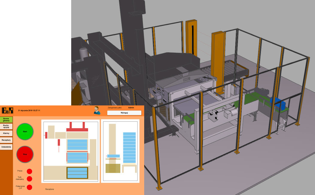 Opracowany został algorytm pracy maszyny, interfejs dla operatora oparty na technologiach webowych oraz ruch serwonapędami. Dzięki komunikacji z symulacją industrialPhysics można przetestować większość funkcjonalności maszyny zanim zostanie ona wykonana. Skraca to znacznie czas uruchomienia oraz wprowadzenia urządzenia na rynek.