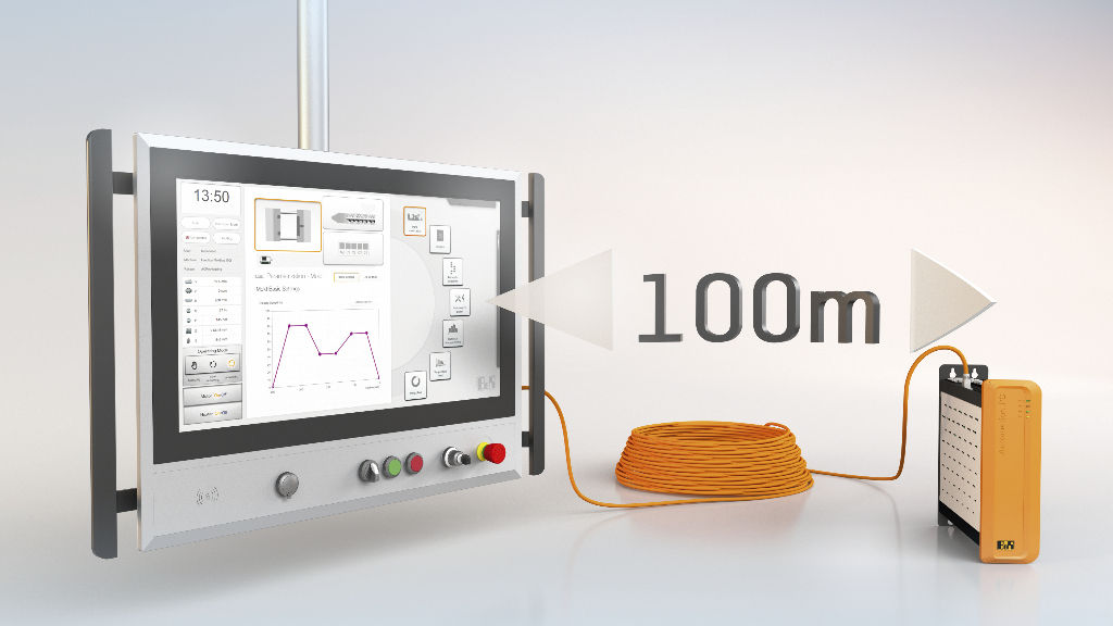 SDL3 pozwala obsługiwać panel operatorski oddalony od przemysłowego PeCeta nawet o 100 metrów i podłączony do niego za pomocą zwykłego przewodu Ethernet. Można zatem instalować urządzenia HMI dokładnie tam, gdzie są potrzebne – nawet w obrębie bardzo dużych maszyn. Technologia ta nie wymaga paneli o architekturze komputera klasy PC. Nie trzeba procesora centralnego, pamięci RAM ani systemu operacyjnego. SDL3 przesyła dane obrazu bez kompresji i w rozdzielczości do Full HD. Panel odbiera dane obrazu nie poddając ich żadnej konwersji ani przetworzeniu; dlatego wyświetlacza przedstawia obraz z taką samą prędkością i jakością, jak generowana przez
